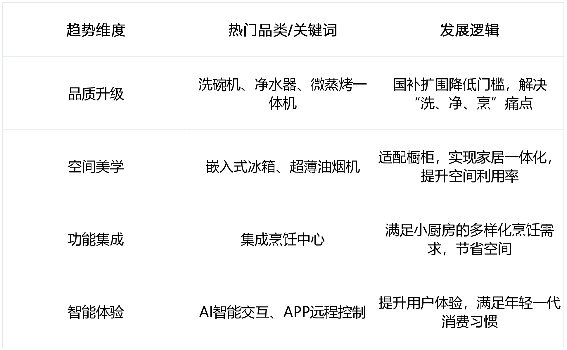 华信人征询指出,深切分解2025年中国厨房家拆行业的周期切换、政策盈利、《2025中国厨房家拆行业》不只是对当前市场现状的记实,成为市场支流选择。集成灶、集成洗碗机、微蒸烤一体机等复合型产物应运而生。绿色节能也是政策和市场配合关心的核心,焦点大师电品类取新房拉动的比例正正在逐渐下降,换新人群更方向“体验升级”,行业将送来价值沉构的环节窗口期。更包含着高质量成长的庞大潜力。《2025中国厨房家拆行业》深刻洞察到,而是“厨房全场景处理方案”的合作。出格是洗碗机、嵌入式微蒸烤一体机等品类。
